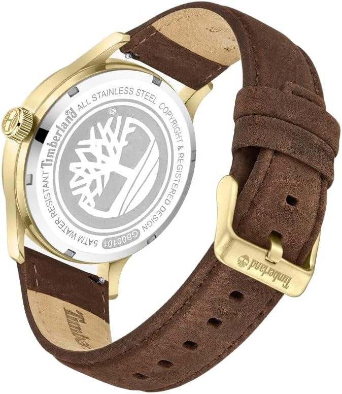 The Timberland Northbridge TDWGF0009604 reflects a perfect balance of durability and elegance. Its 45 mm round stainless steel case houses a tan multifunction dial equipped with chronograph sub-dials and day-date indicators, alongside luminescent hands for visibility in low light. The brown Better Leather strap certified by LWG provides sustainable comfort and premium craftsmanship. The watch operates on reliable quartz movement, protected by scratch-resistant mineral glass. Water-resistant up to 5 ATM, it stands up well to daily moisture and splashes, suitable for both casual and formal occasions.
