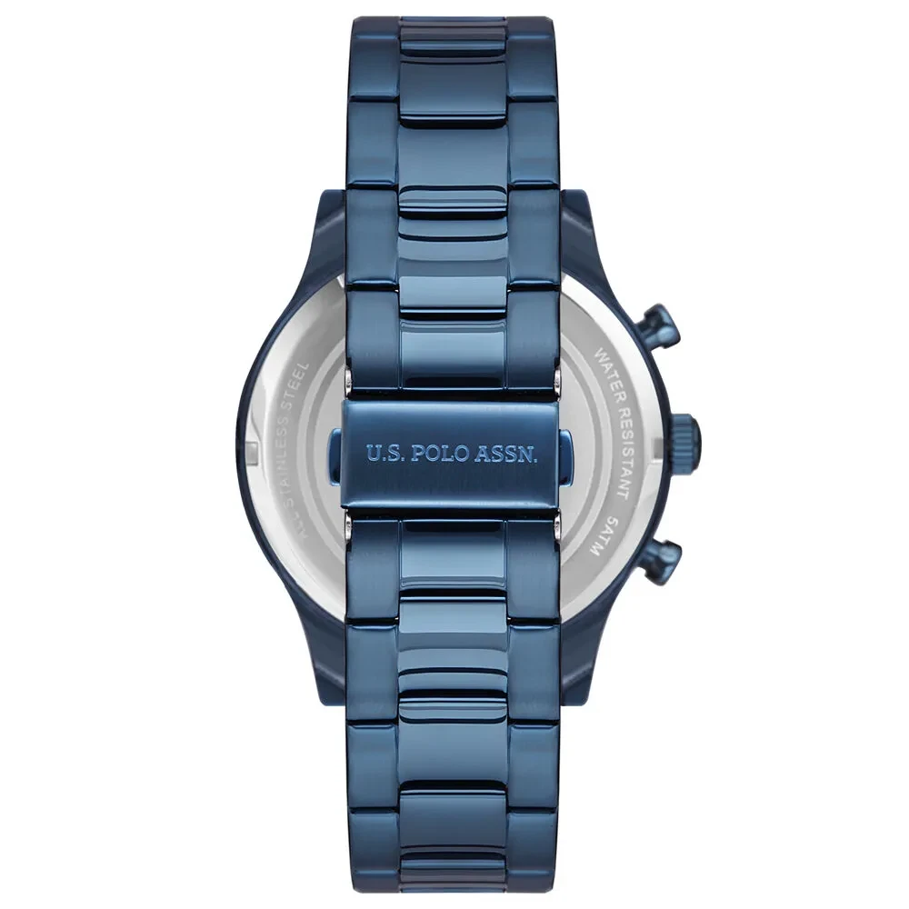 The USPA1010-02 from U.S. Polo Assn. offers a sleek and modern sport watch design tailored for men. It features a 45 mm round navy blue stainless steel case combined with a comfortable mesh band in matching navy blue. The navy blue analog dial is protected by scratch-resistant mineral glass. Powered by reliable quartz movement, the watch is water resistant up to 5 ATM, making it durable for protection against splashes and brief immersion. Its sporty style and robust construction make it perfect for casual, athleisure, and daily wear.