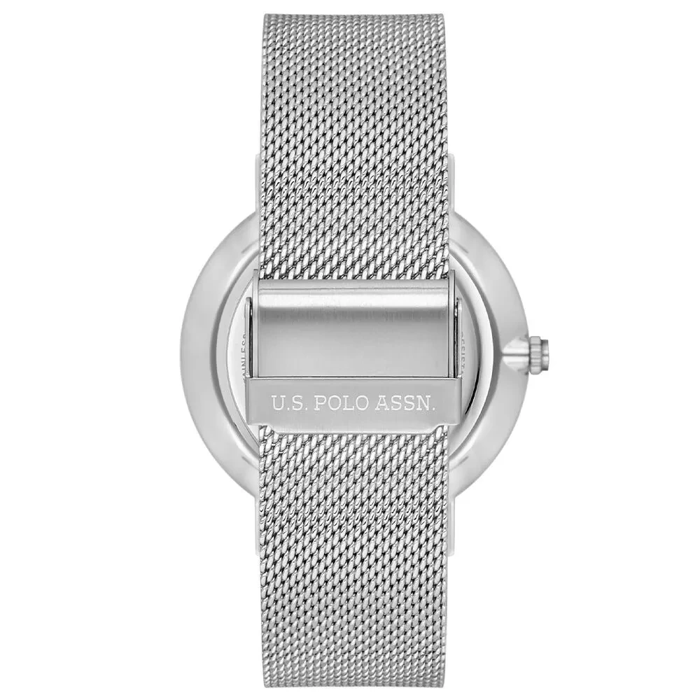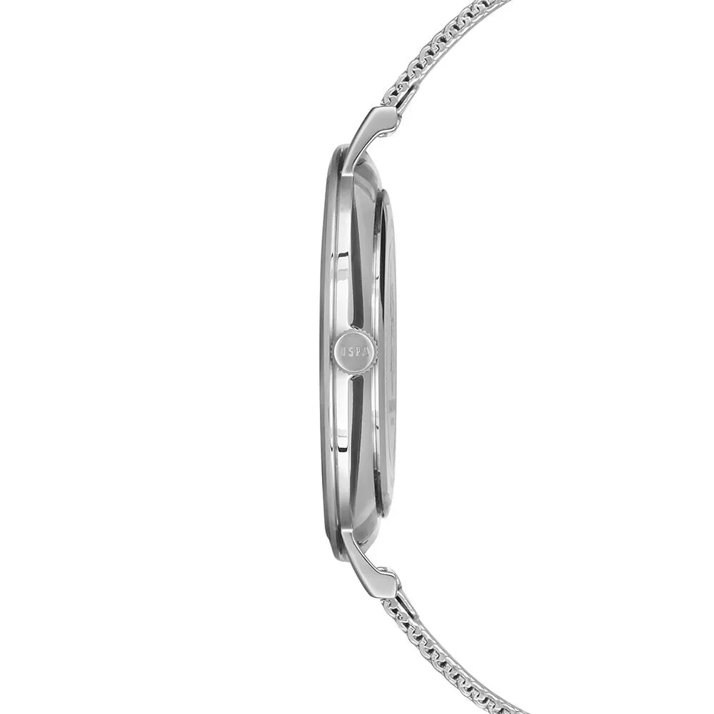 The USPA1024-01 from U.S. Polo Assn. is a modern sports watch designed for men with active lifestyles. It features a 41 mm round metallic gray stainless steel case paired with a comfortable mesh steel band. The gray analog dial ensures clear readability, protected by durable mineral glass. Powered by reliable quartz movement, this watch offers precise timekeeping and a water resistance rating of 5 ATM, suitable for protection against splashes and brief immersion. Its blend of sporty aesthetics and robust build quality makes it a versatile and fashionable timepiece for everyday casual and athletic use.