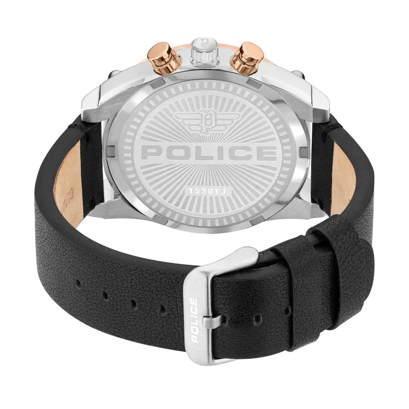 POLICE GENT WATCH RG BLUE DIAL BLK LTR STRP embodies Police's Vigor line with